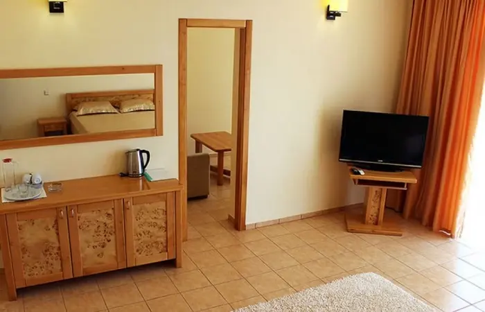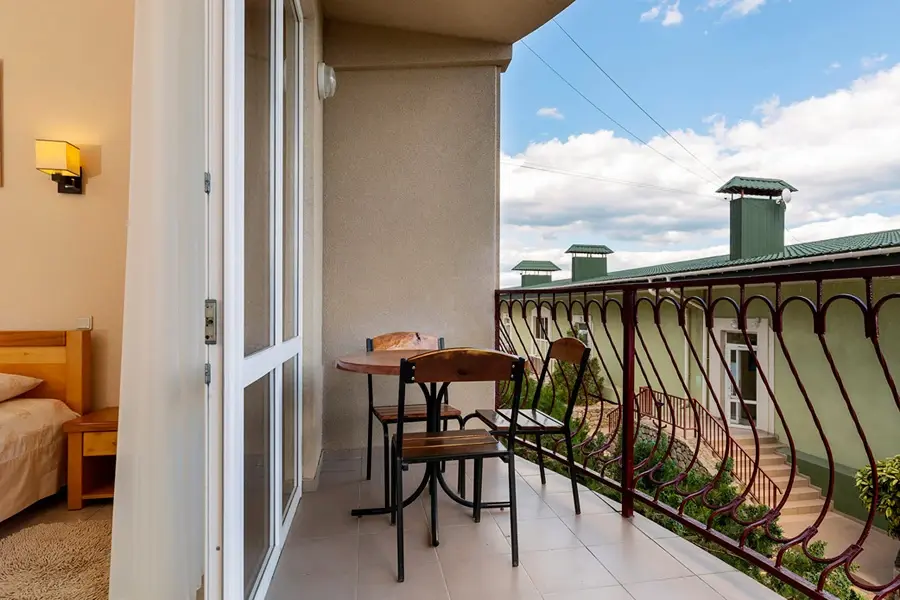 Территория отеля утопает в зелени реликтовой можжевеловой рощи. Многовековые деревья можжевельника, фисташки и дуба создают уникальный микроклимат, наполняя воздух целебными фитонцидами.
